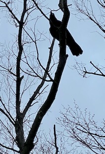 ようやく枝先が芽吹きはじめた欅の樹で、一羽の鴉が、手折った大きな枝を押さえて、